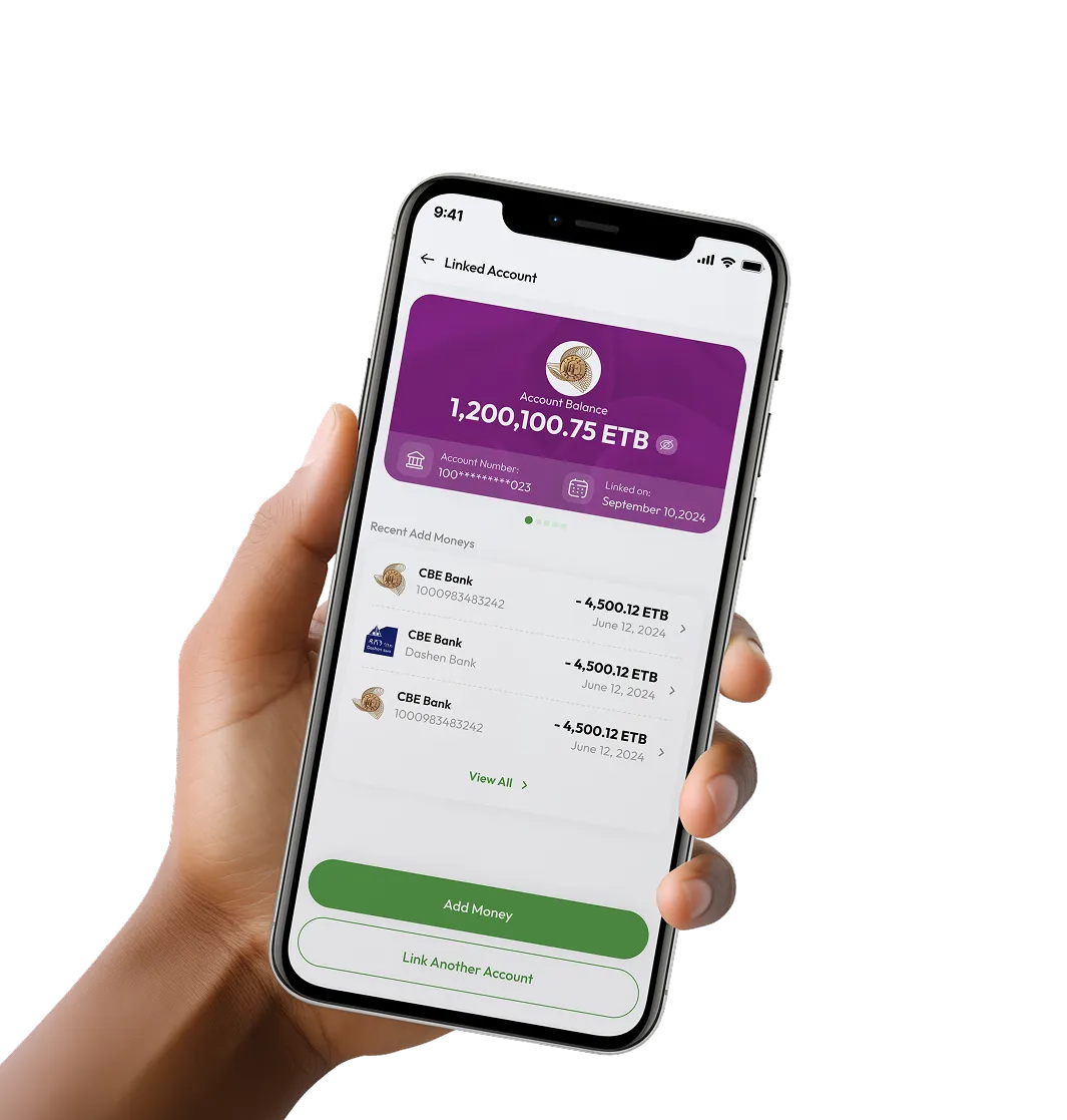 Once your bank account is linked, topping up your ETB wallet is just a few taps away. Whether you’re preparing to pay bills, shop, or send money, it’s fast, secure, and always available.