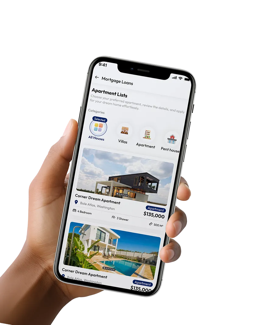Apply for car loans or mortgage financing with just a few steps from the app. Select property, apply and track approval status in real time. Connect partners with trusted financial institutions to make the process quick, secure, and paperless.