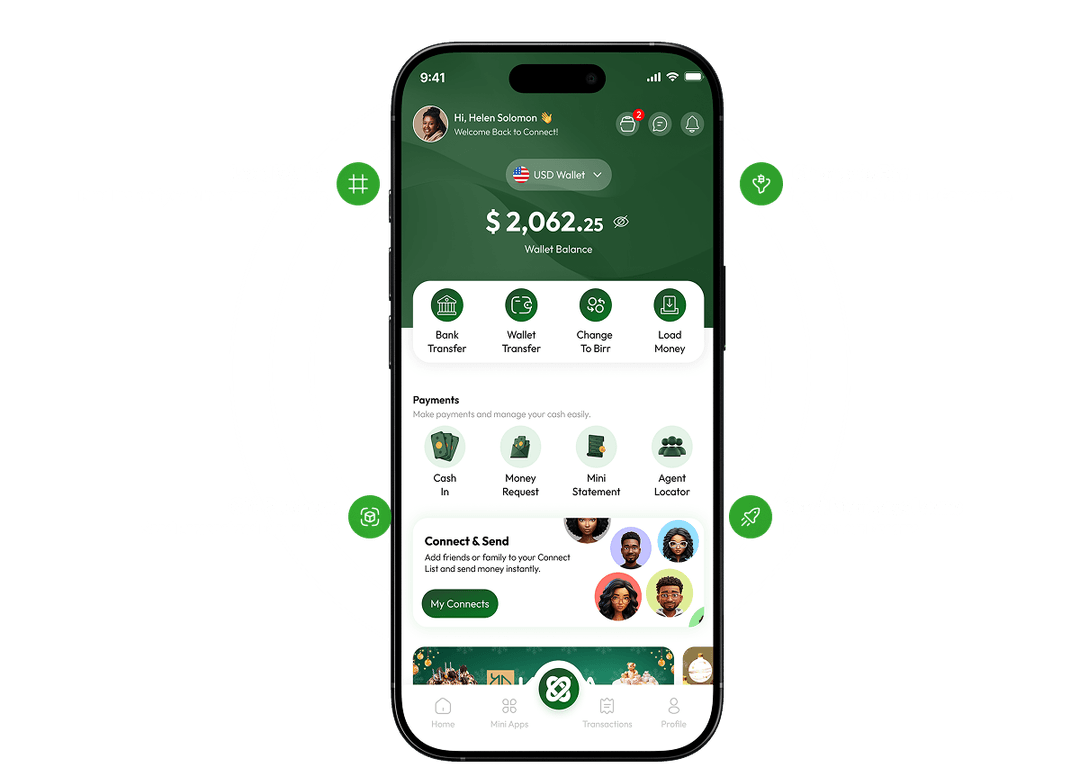 Go beyond just sending money—Connect brings a complete suite of financial tools into one platform. From loans and bills to merchant payments and lifestyle mini apps, manage everything in one seamless experience.